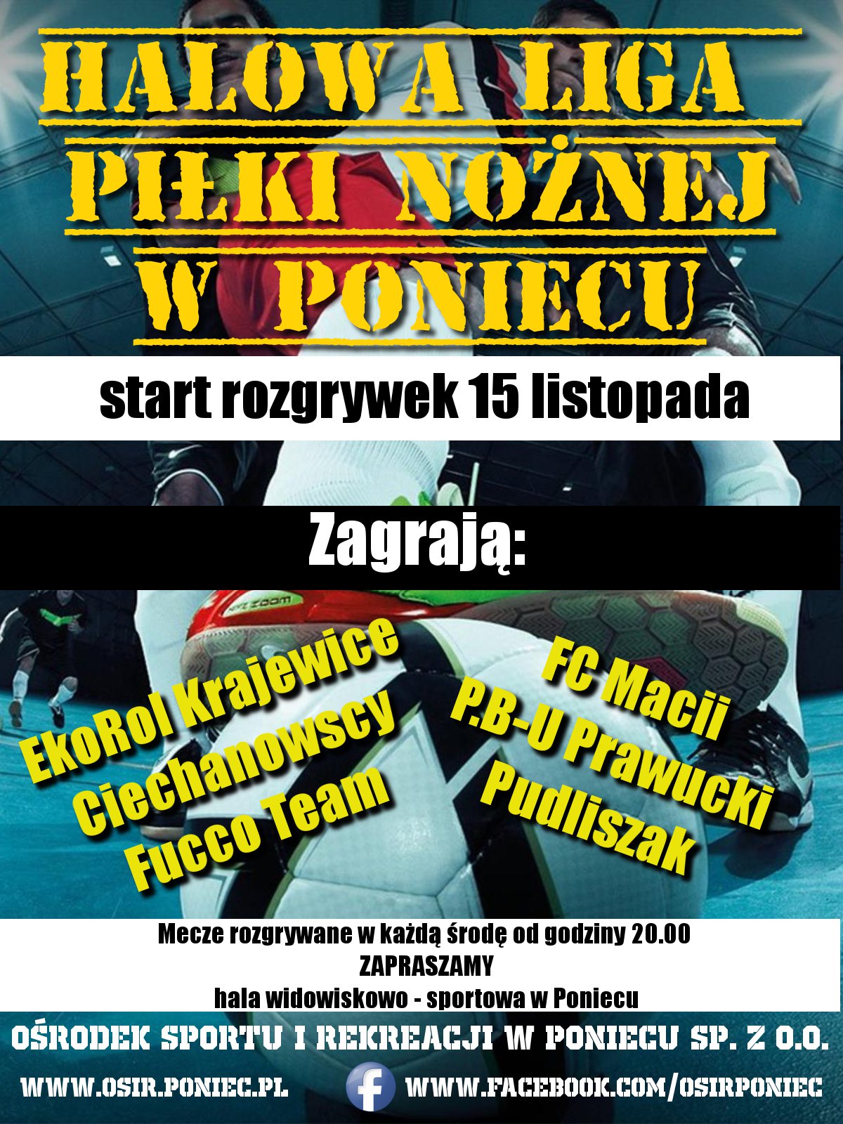 W dniu dzisiejszym o godzinie 20.00 meczem pomiędzy drużynami EkoRol Krajewice a Pudliszak zostaną zainaugurowane rozgrywki Halowej Ligi Piłki Nożnej w Poniecu.